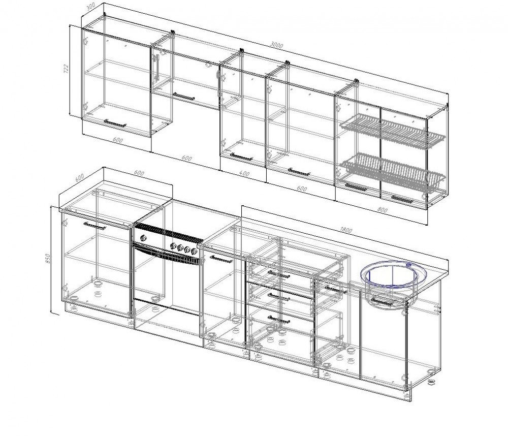 Кухонный гарнитур Капри 3000 (Стол. 26мм)